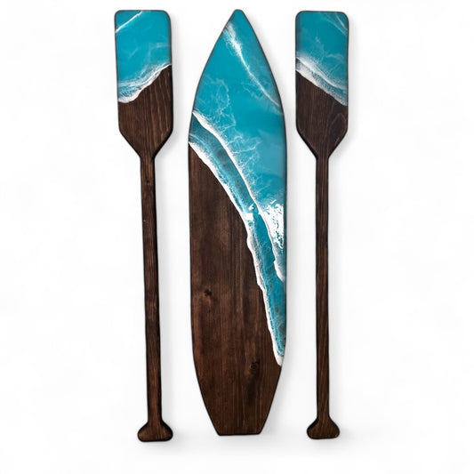 3 ft Resin Surfboard Wall Art with Oars -Custom Order 36"
