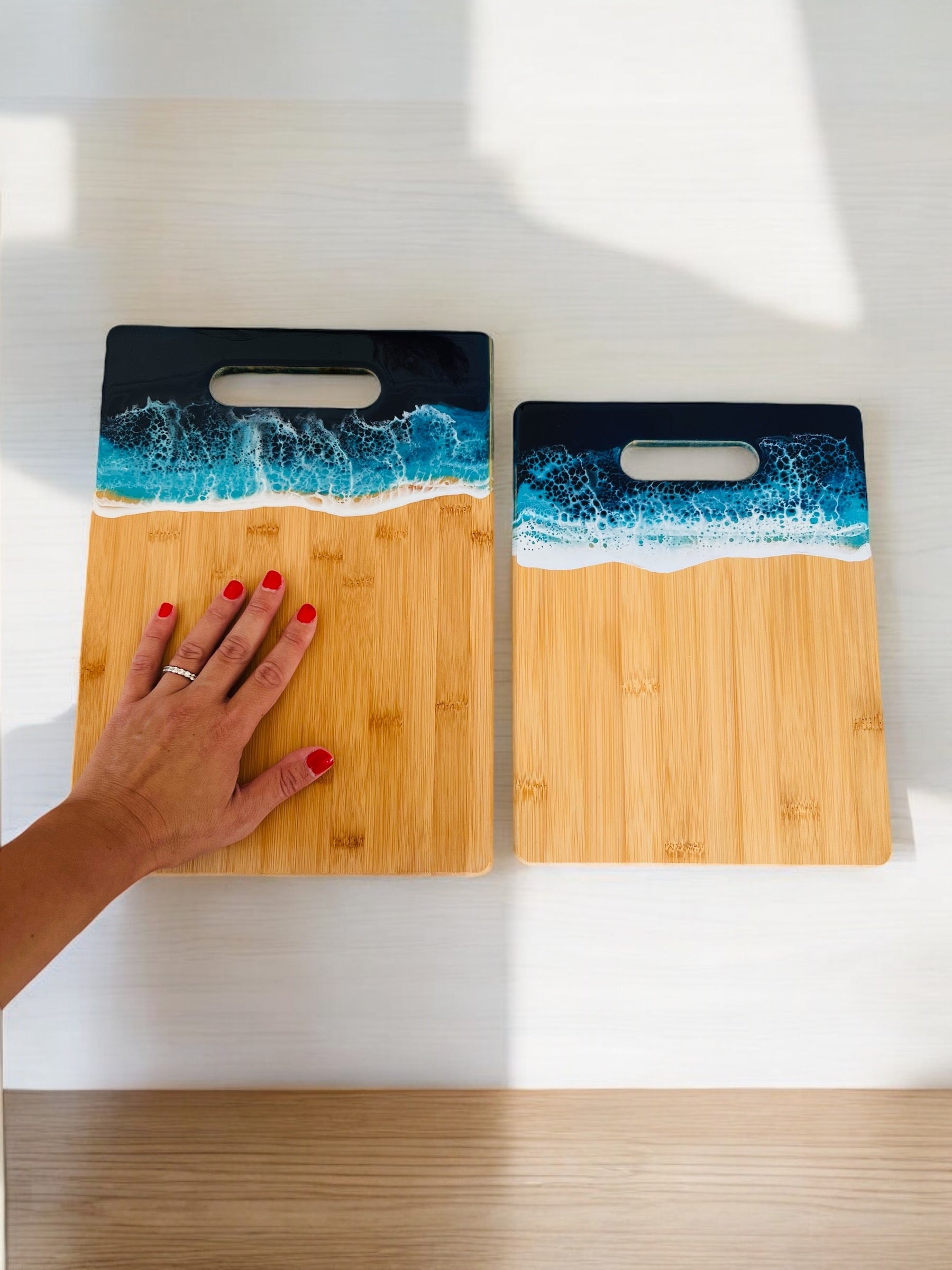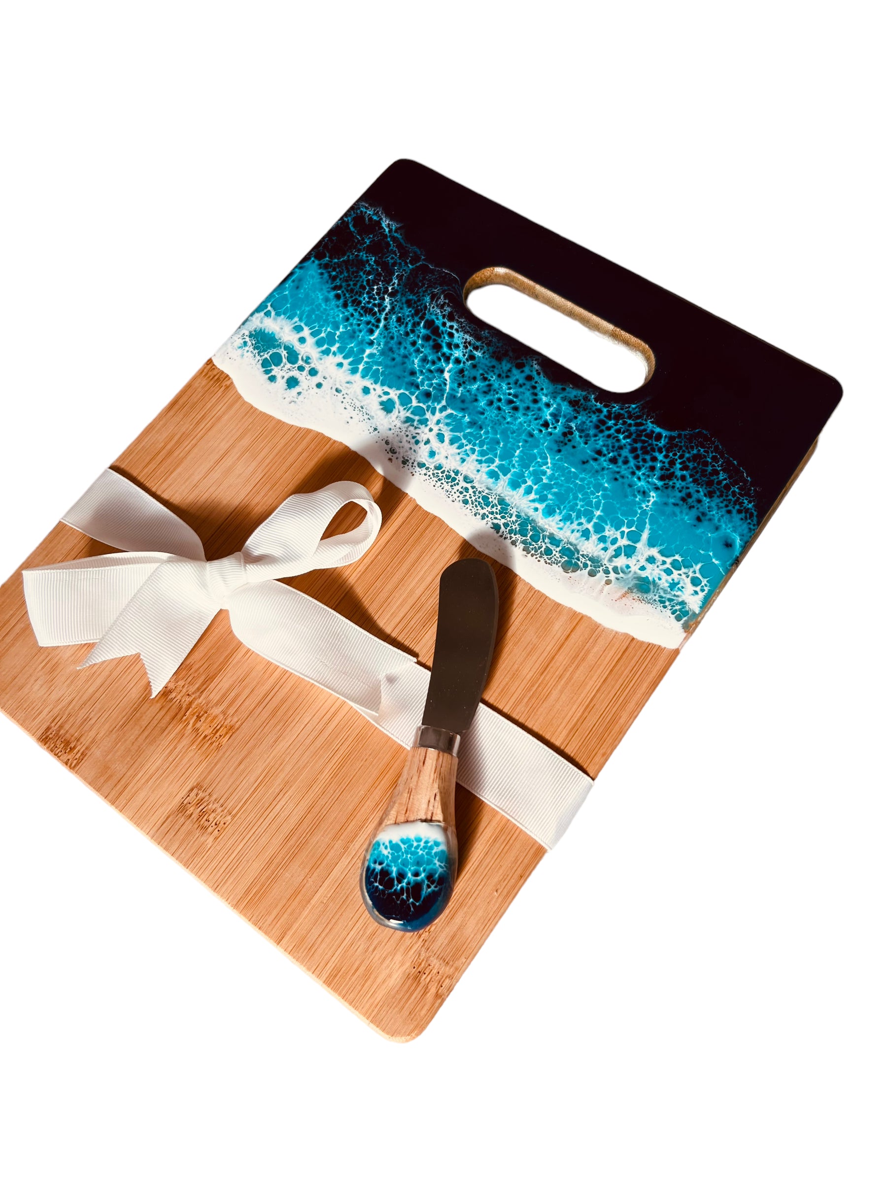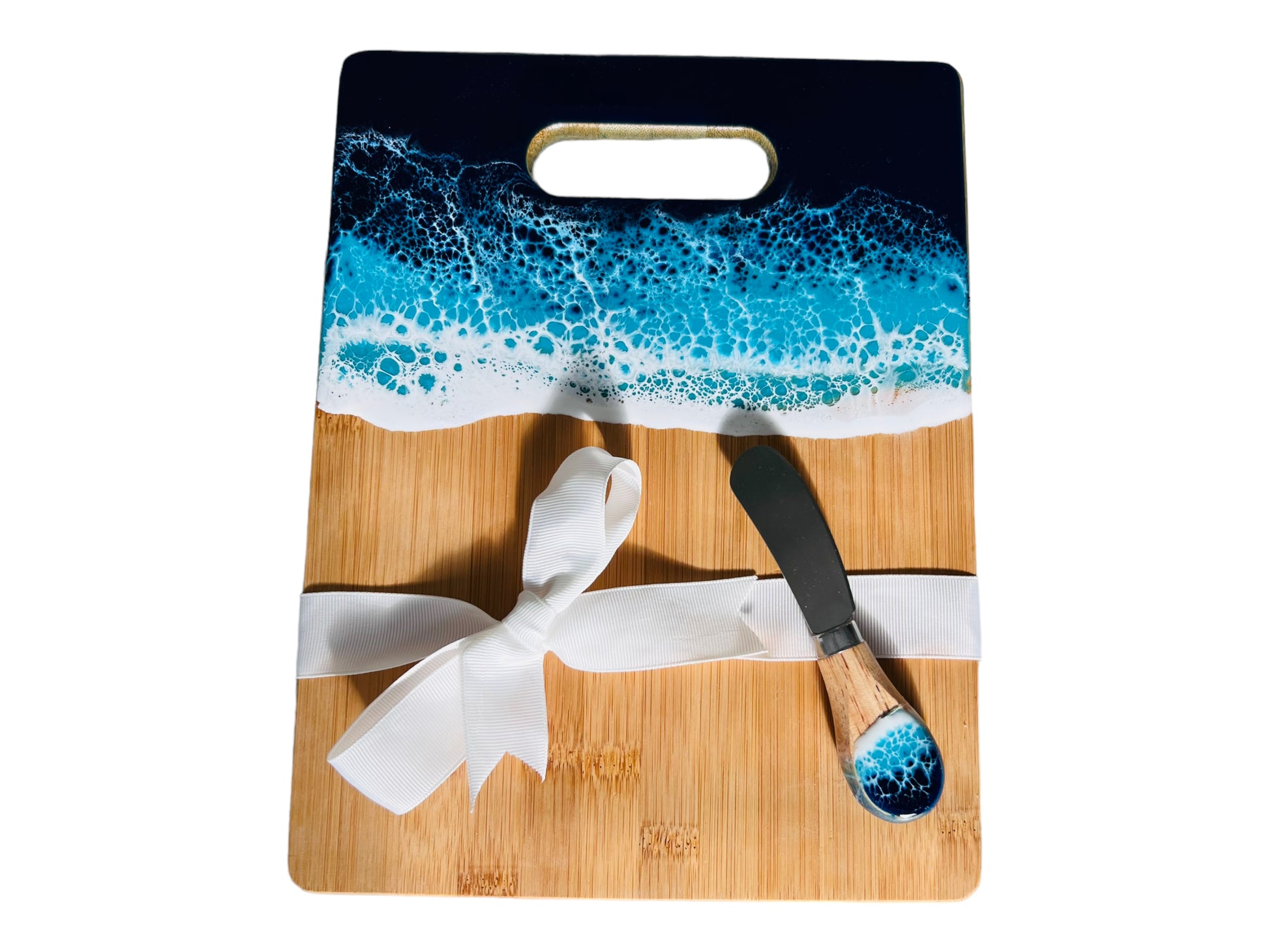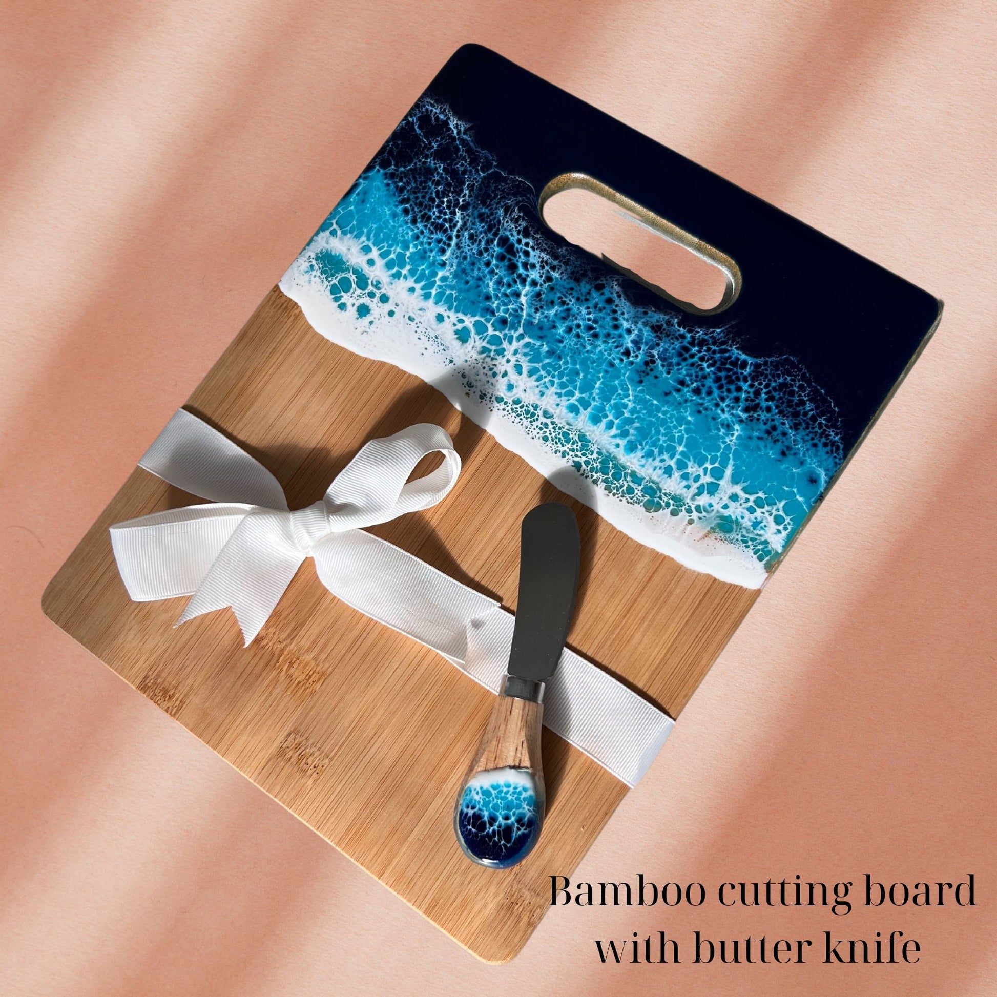 Ocean Resin Bamboo Cutting Board Gift Set with One Cheese Knife