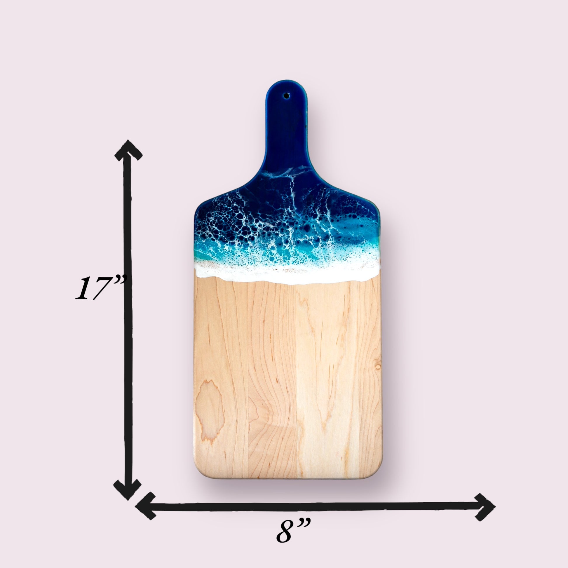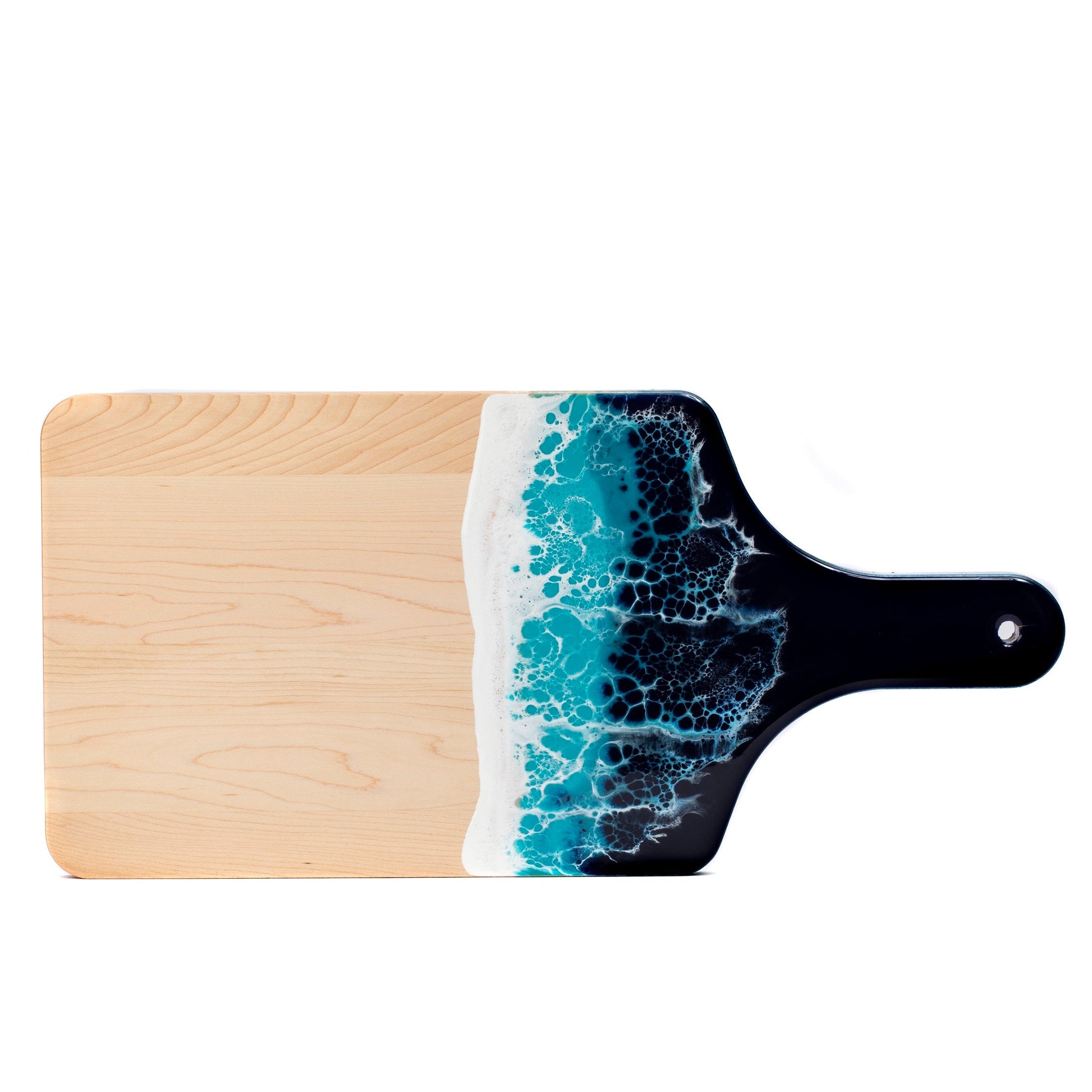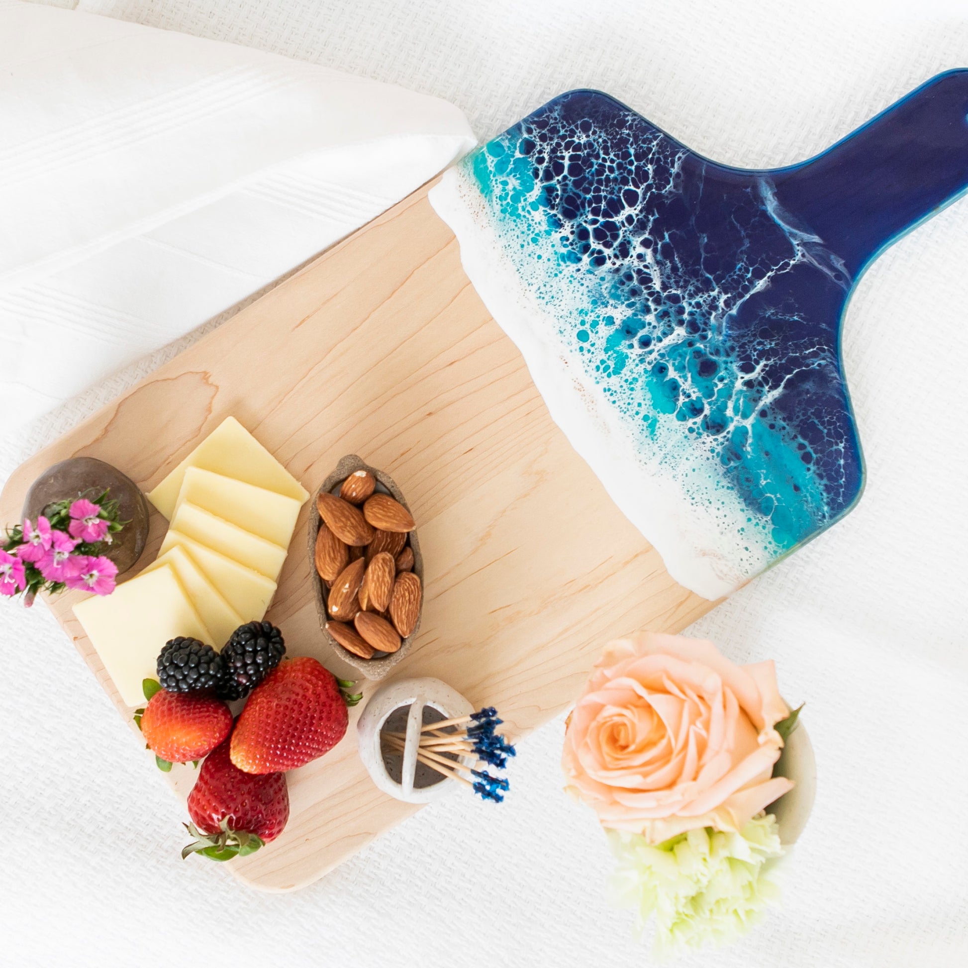 Our boards are fully functional and perfect for serving cheese, charcuterie, or appetizers. The wood side is safe for cutting, while the resin side is best for serving and displaying to preserve its beauty.