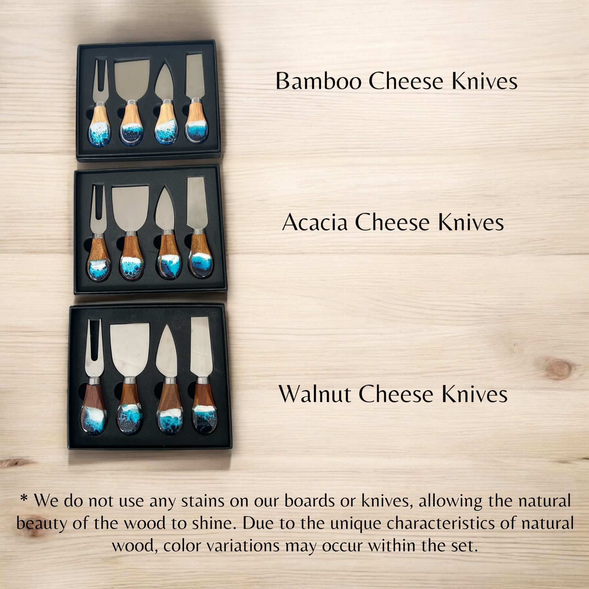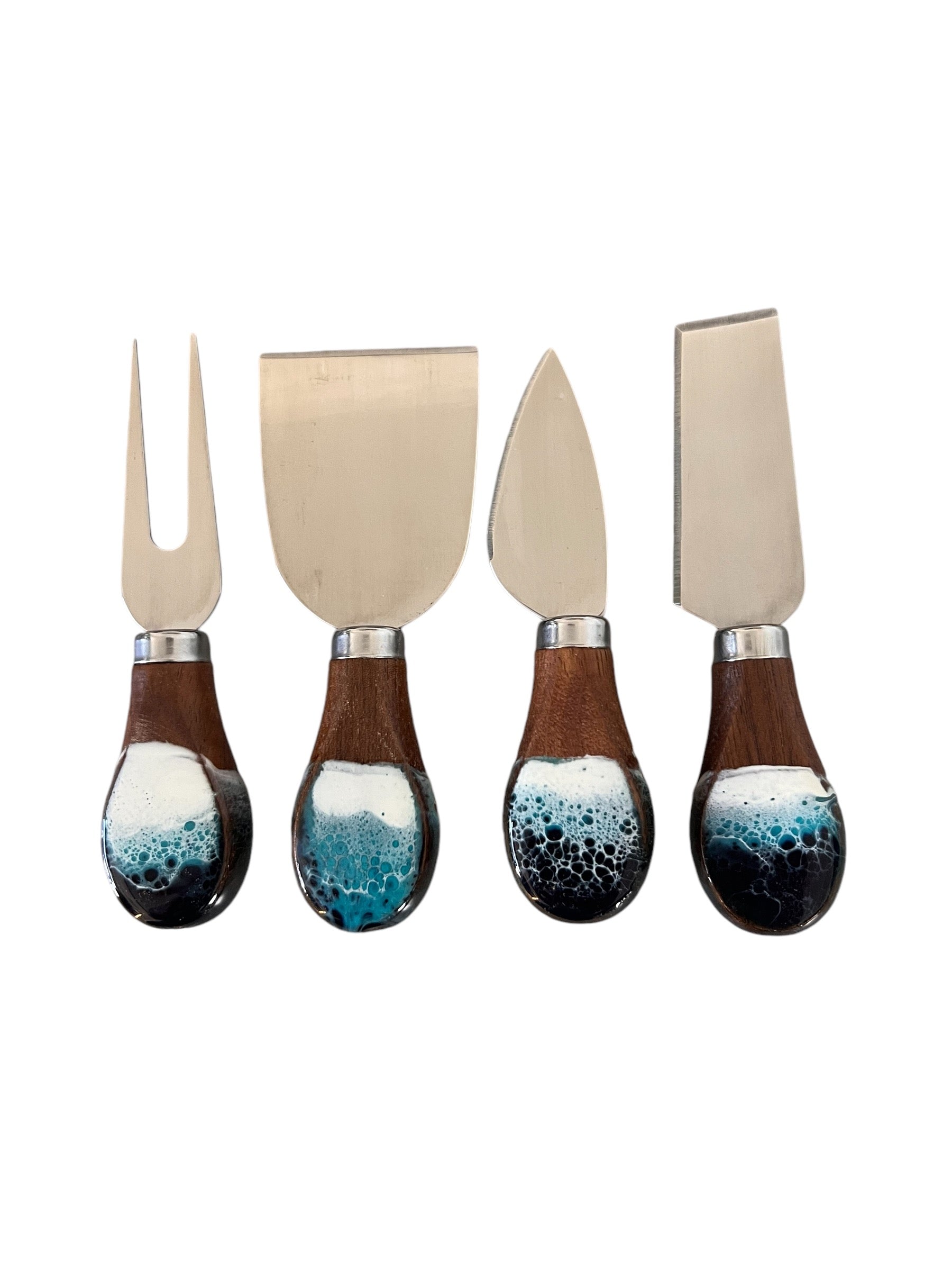 Cheese Knife Set with Ocean Resin Accent- Walnut