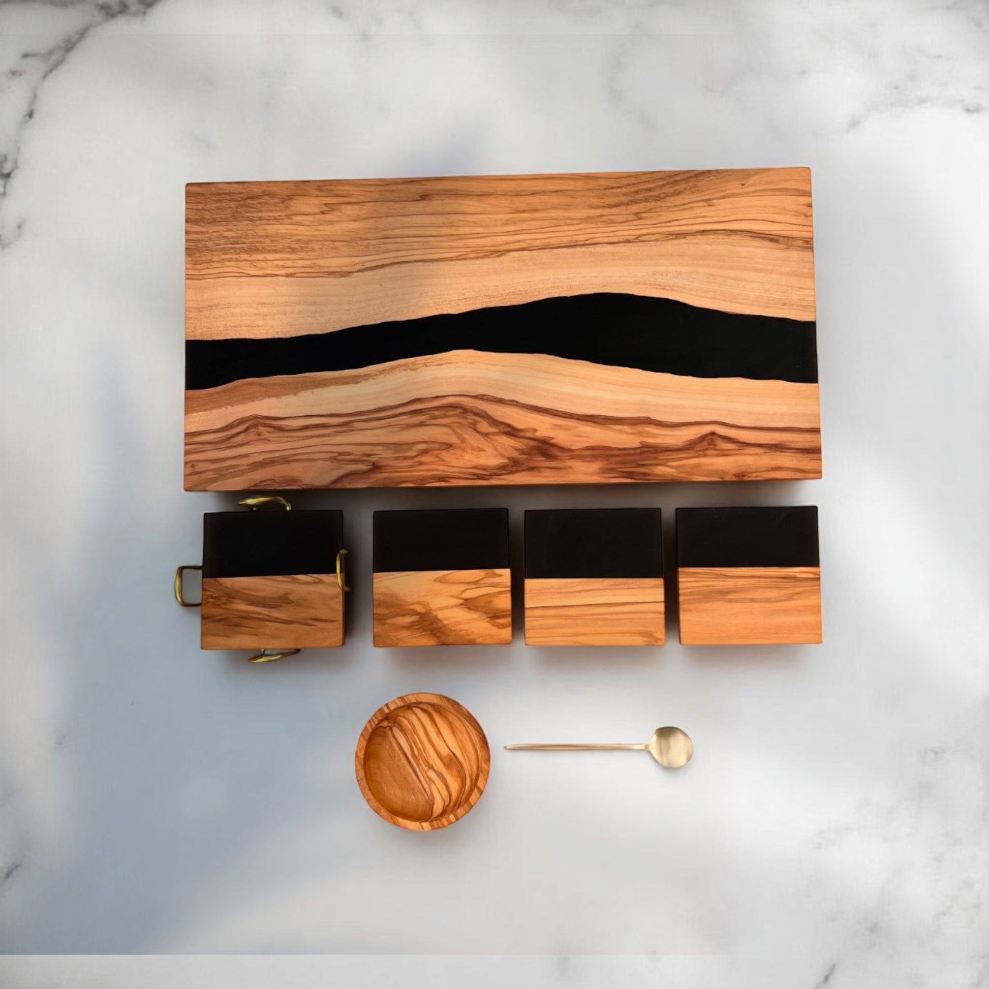 Personalized Newlywed Gift Set, Black – Olive Wood Resin Charcuterie & Serving Board