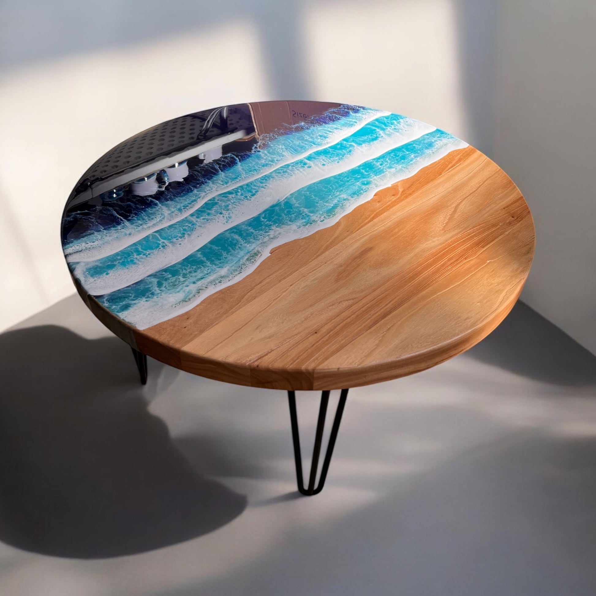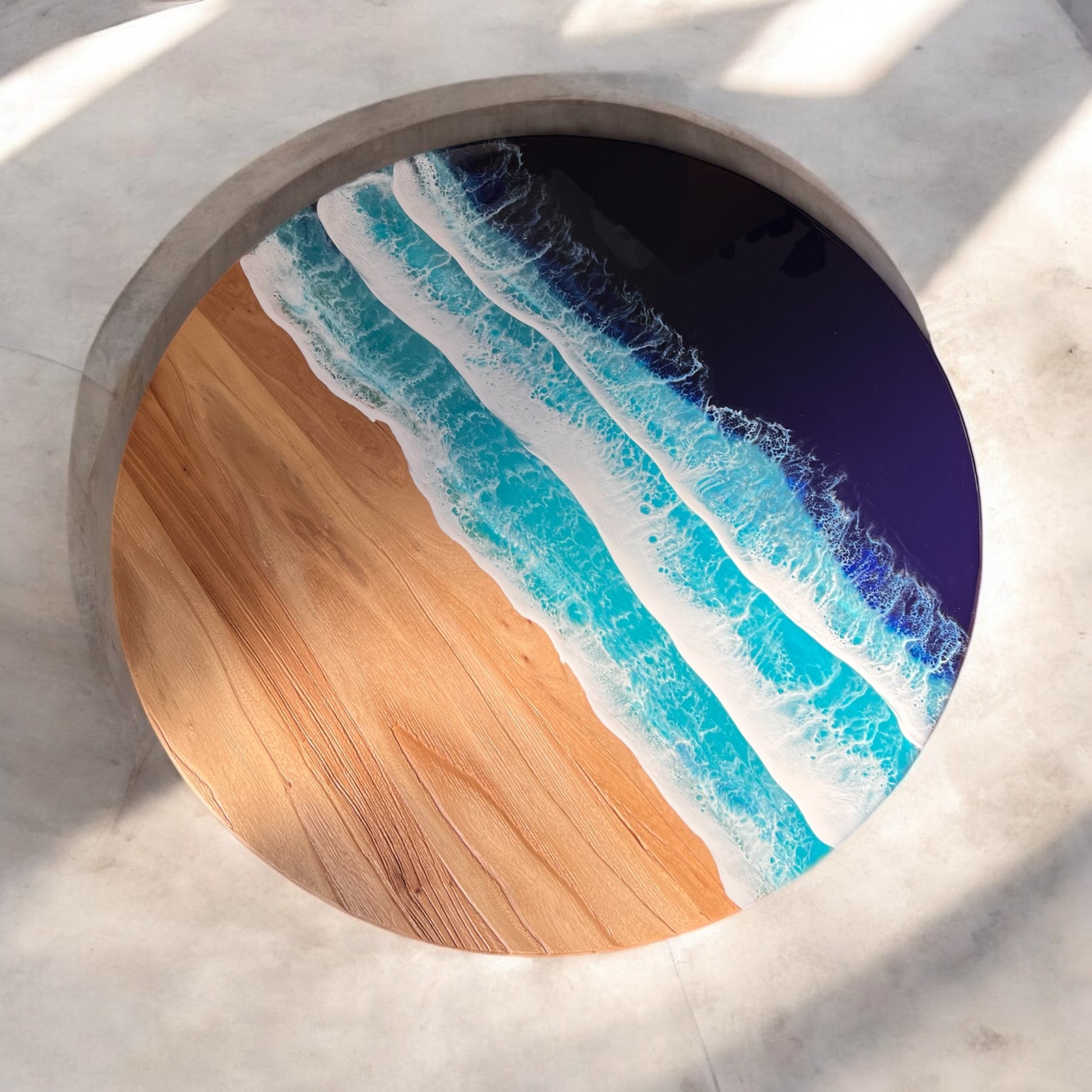 Resin Ocean Wave Coffee Table with Round Rustic Reclaim Wood