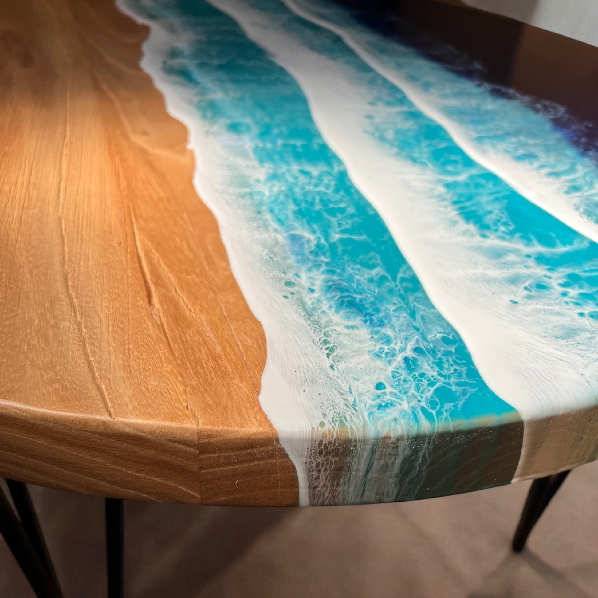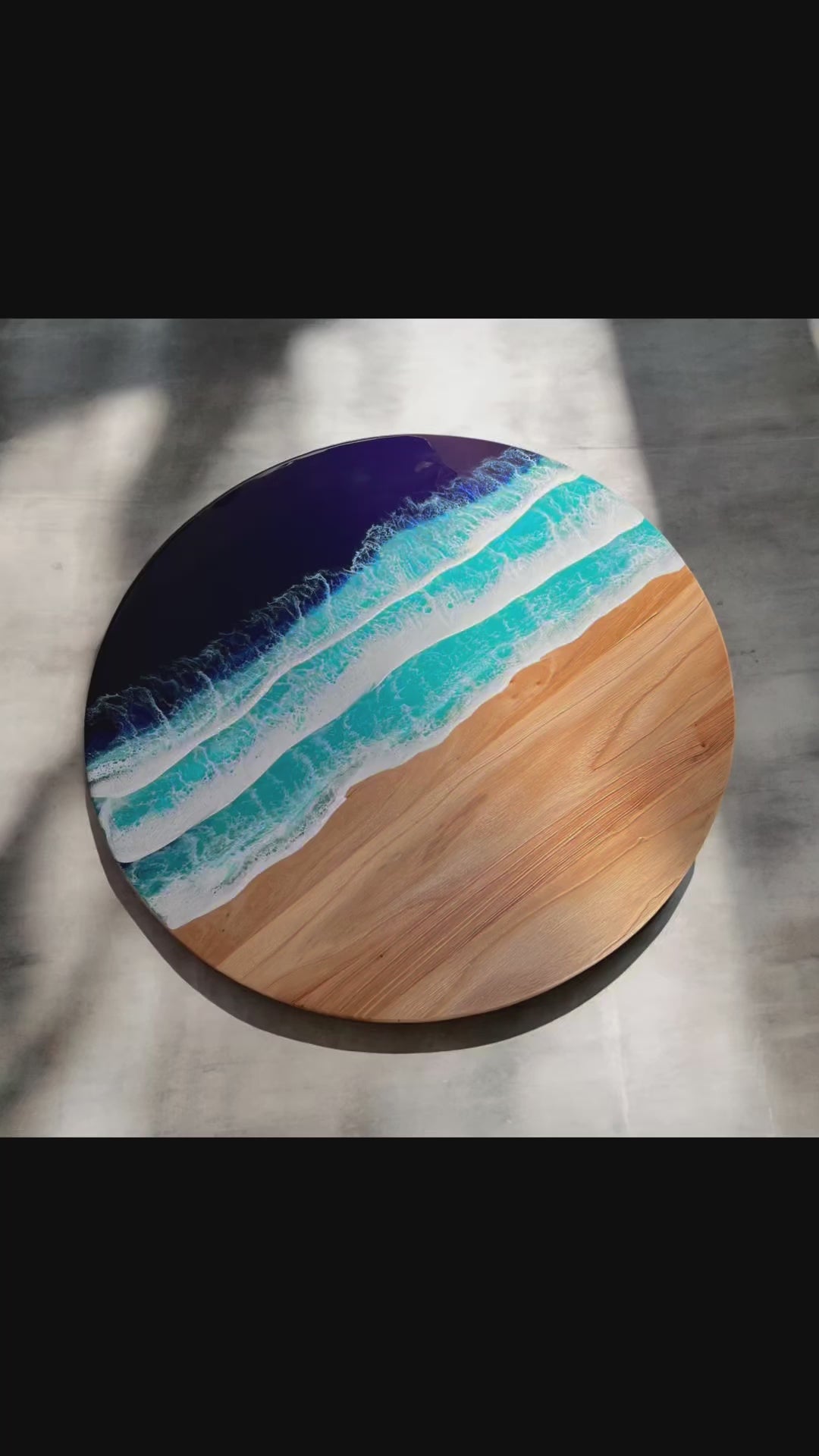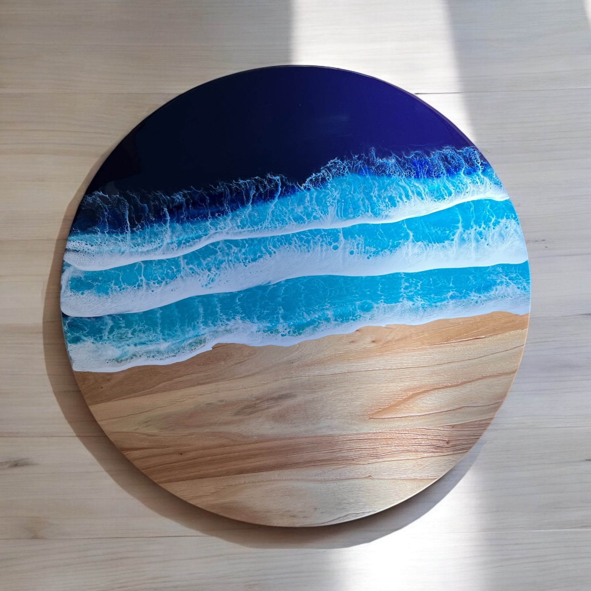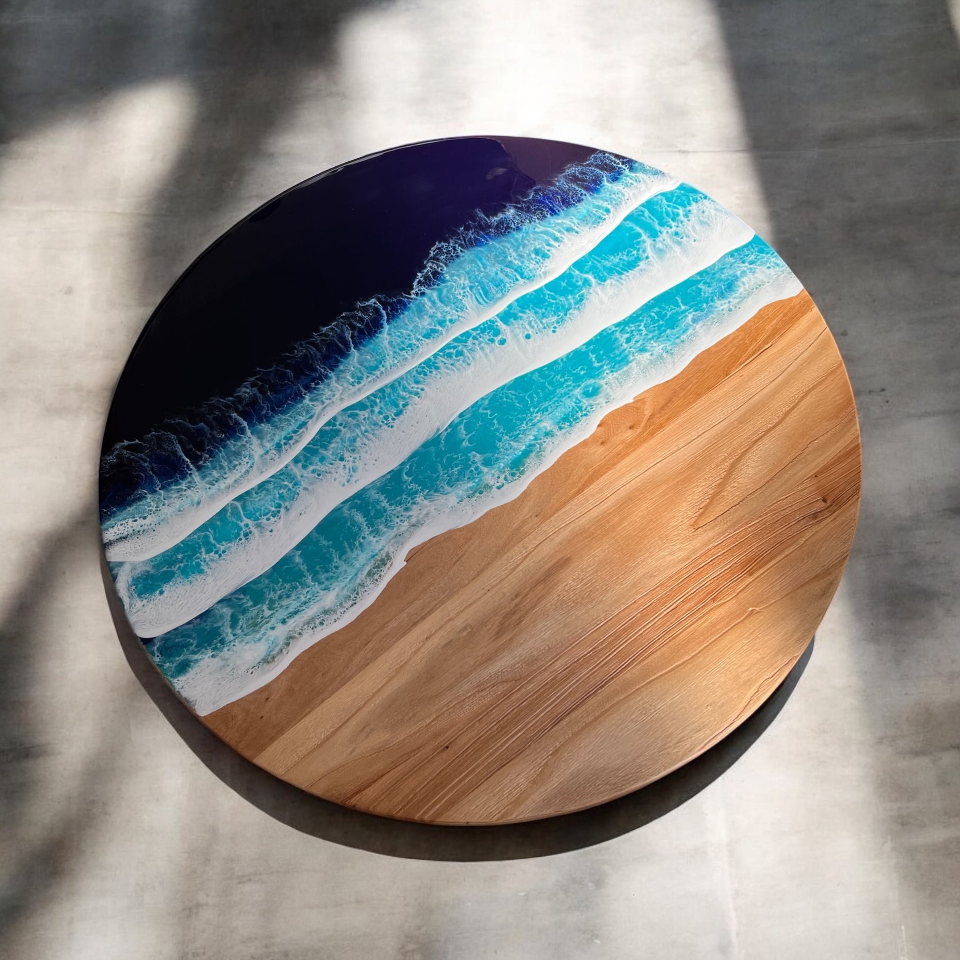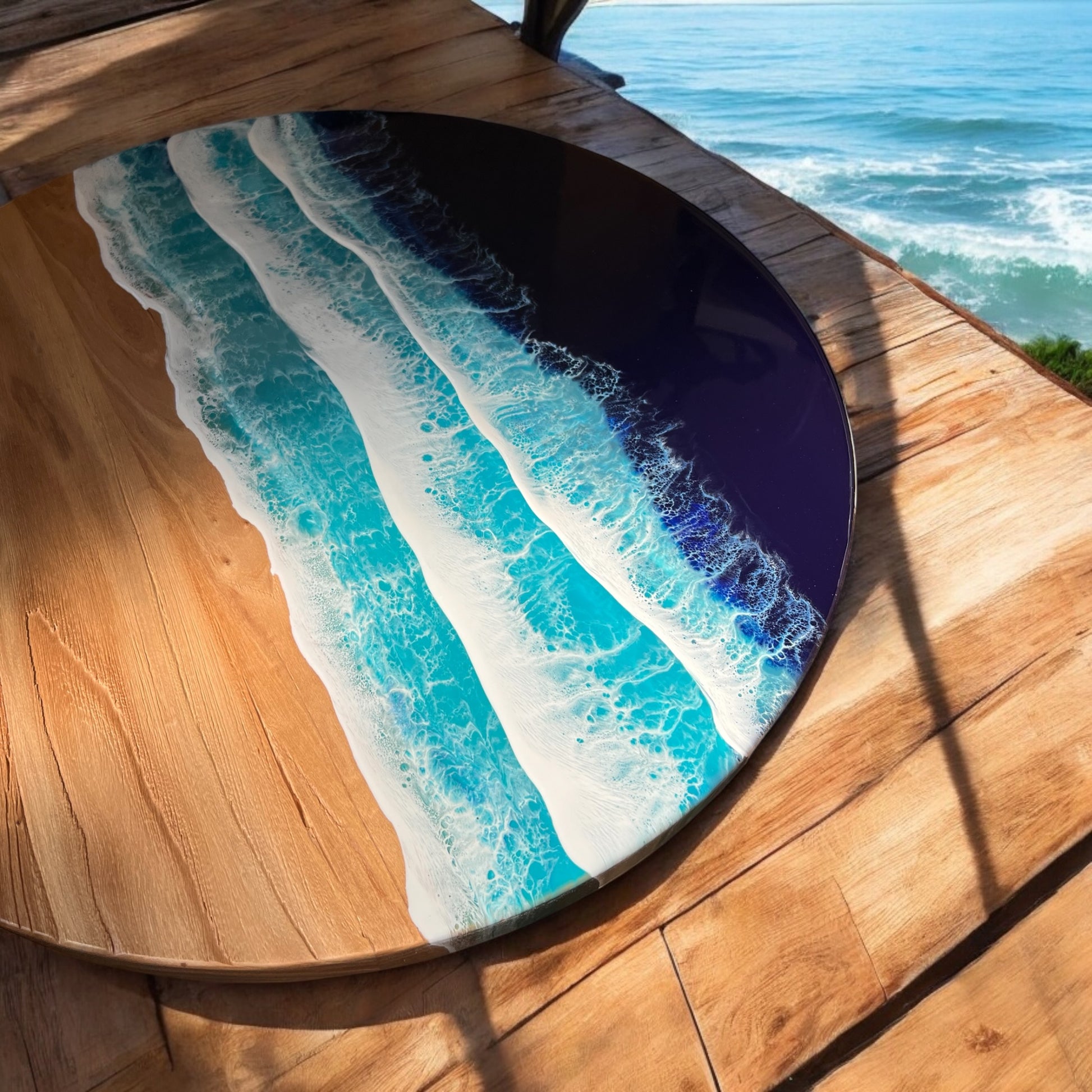 Material: Reclaimed rustic elm wood (1-inch thick) with resin ocean wave design