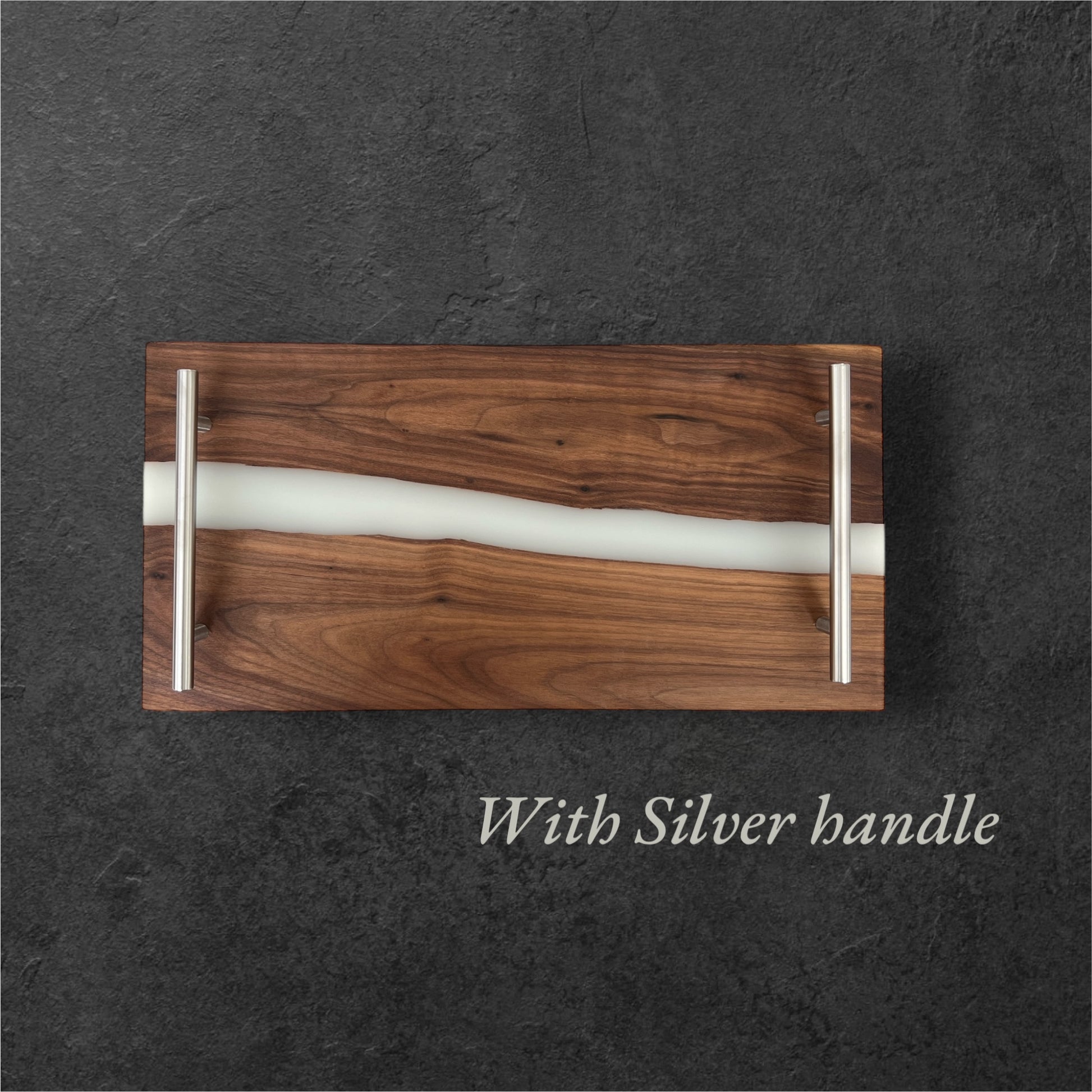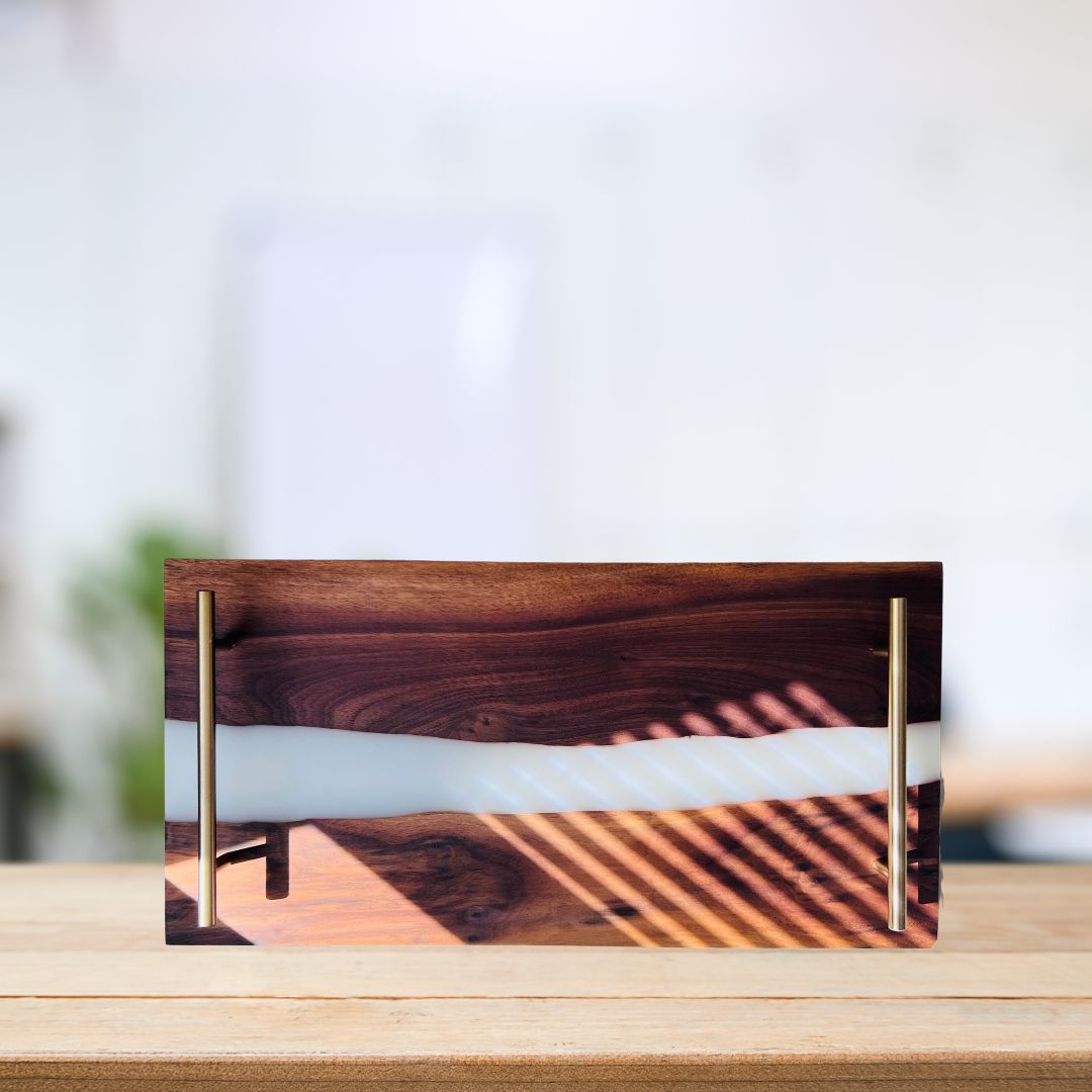 River Board Tray with Resin, Personalized Charcuterie Tray with White Resin