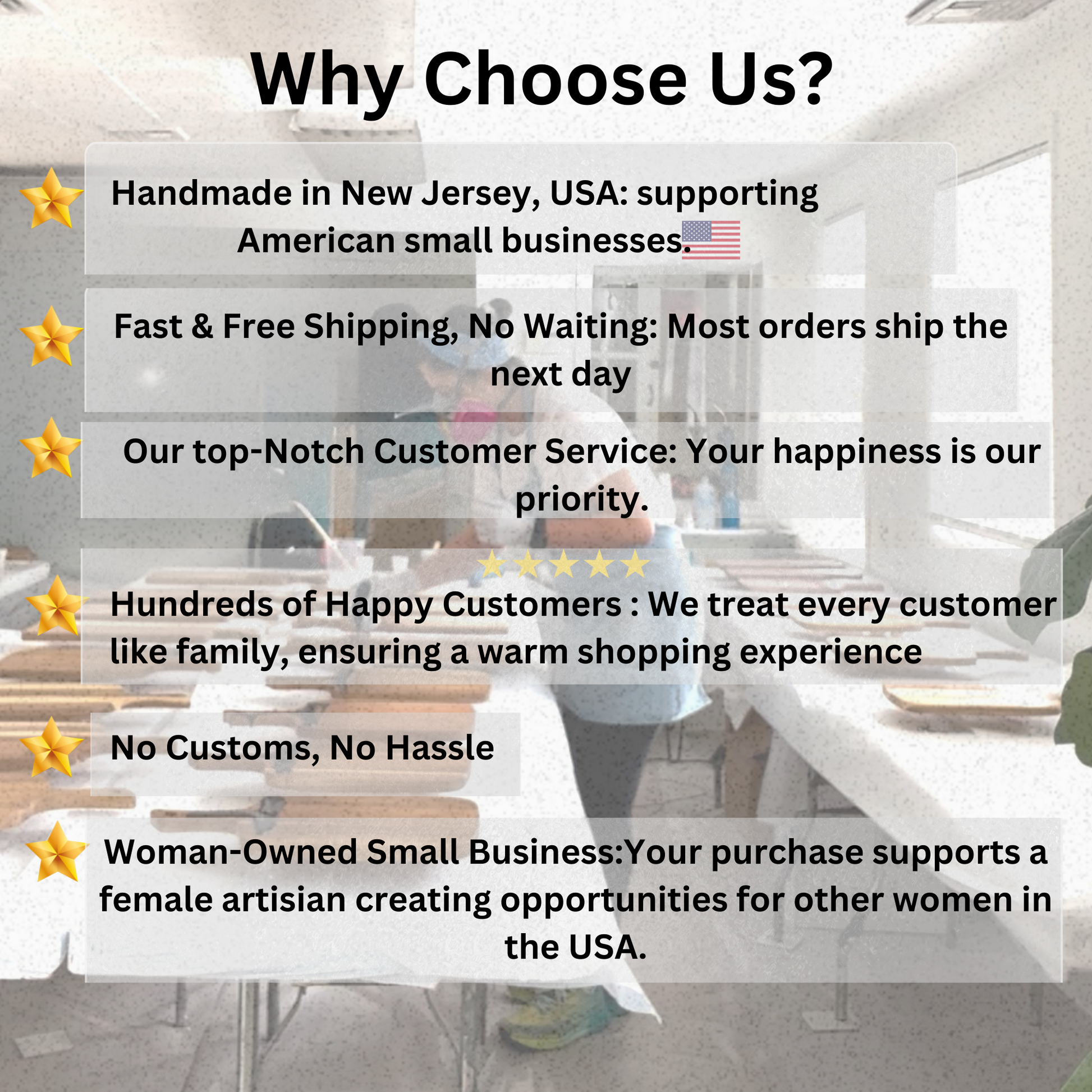 We take pride in our craftsmanship and want you to love your purchase. We accept returns and exchanges within 14 days if you’re not completely satisfied if the item arrives damaged, or if there is an issue with your order. Please contact us, and we’ll be happy to help.